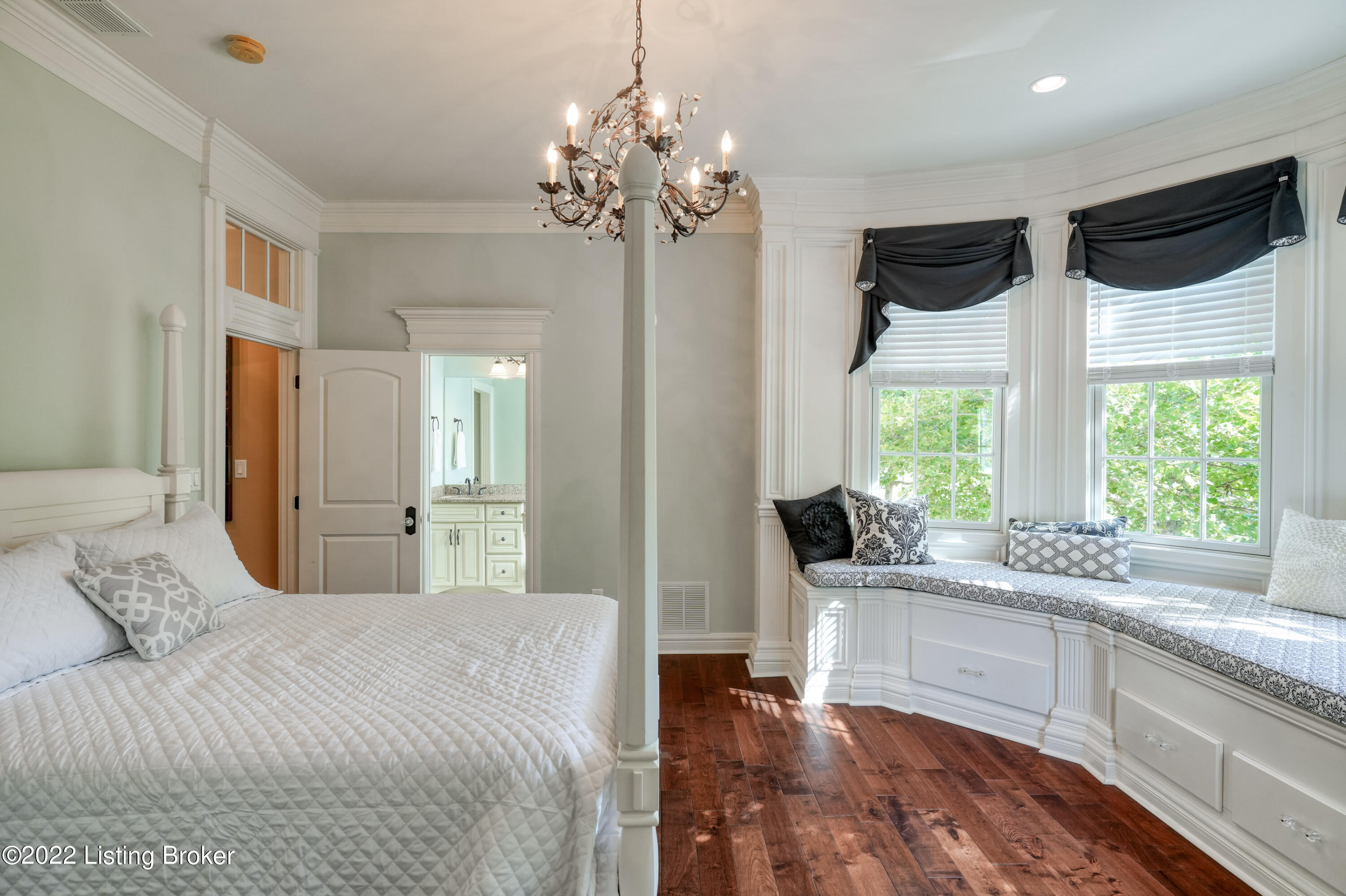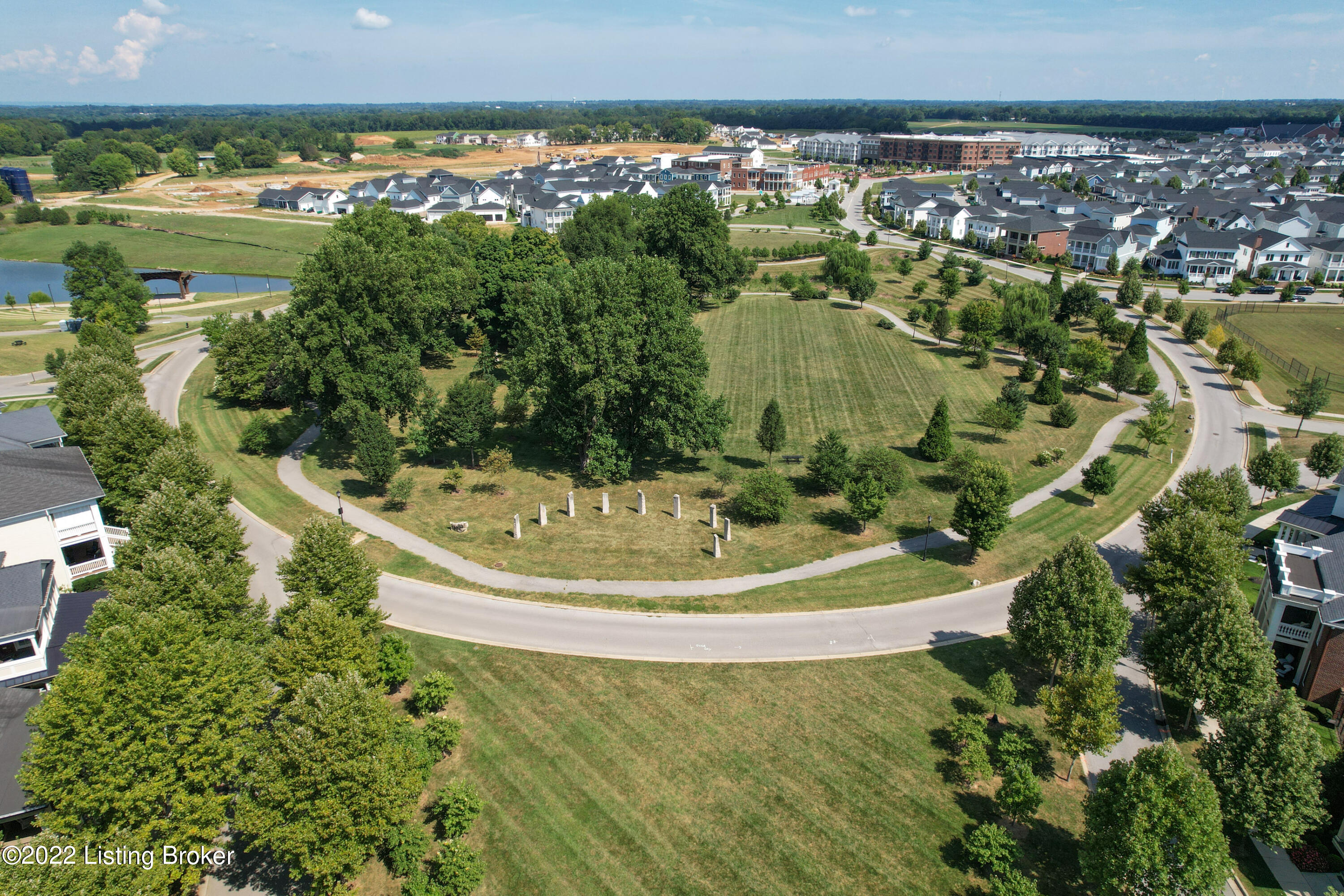 This one-of-a-kind, stately brick St. James Court inspired home is nestled in the heart of Norton Commons near its iconic fountain. It is the only home in this neighborhood that was built by Richard Miles and was the second-place winner of the 2011 Homearama! Soaring 10 foot ceilings, beautiful hardwood flooring, lovely wainscoting and extensive millwork can be seen throughout the first floor. The expansive kitchen opens out into a breakfast nook and formal dining room, making this space optimal for hosting guests. The chef will enjoy the gas cooktop with pot filler, double oven, abundance of cabinetry, and generous countertop space, which includes an island with bar seating. The home's living room sits just off the kitchen and is made cozy with a double-sided fireplace shared with the shared with the outdoor covered porch. Host your guests indoors or outdoors with this stunning space that flows beautifully and offers the perfect location for conversation or watching this week's big game! A first-floor primary suite is tucked away in the rear of the home offering privacy. With a soaring barrel ceiling, impressive walk-in closet, and expansive ensuite bathroom, you will feel as if you're enjoying a spa day. The primary bathroom features stunning glass tile detail on the ceiling above the soaking tub and a built-in fireplace, creating a serene environment to unwind. A private toilet closet, two separate vanities, and walk-in shower rounds out this unbelievable ensuite bath. A first floor laundry room can be found down the hall towards the attached two-car garage and offers the new owners wonderful storage space. The second floor offers a second, large primary suite with oversized window seat overlooking the fountain on Meeting Street. The ensuite bathroom offers a generous soaking tub, separate shower, and large vanity. The home's third and fourth bedrooms each feature their own private vanities and are connected through a shared bathroom. Each of the second floor bedrooms have spacious walk-in closets. A laundry area on the second floor is an added bonus. The third floor theater room, complete with projector and retractable screen, is the perfect place to enjoy watching your favorite sports or movies. A half bathroom is conveniently located on the third floor just off the theater room. The spacious lower level provides numerous spaces that will delight the entertainer! A family room with built-in shelving and a stunning coffered ceiling, a pool table area, and a wet bar area with seating offer spaces to congregate with family and friends. A fifth bedroom, which also makes a great home office, a full bathroom, an exercise room, and an unfinished storage area create maximum functionality for the lower level space. This home has many upgraded features; pride of ownership shows throughout. You will love the close proximity of this home to neighborhood restaurants and retail. Enjoy the neighborhood pools and concerts at the amphitheater. Norton Commons offers its residents the luxury of a small town atmosphere while still being just minutes away from I-71, I-265, the East End Bridge, Norton Commons YMCA, and more! Local restaurants, shops, parks, and more are all within reach in this incredible neighborhood.